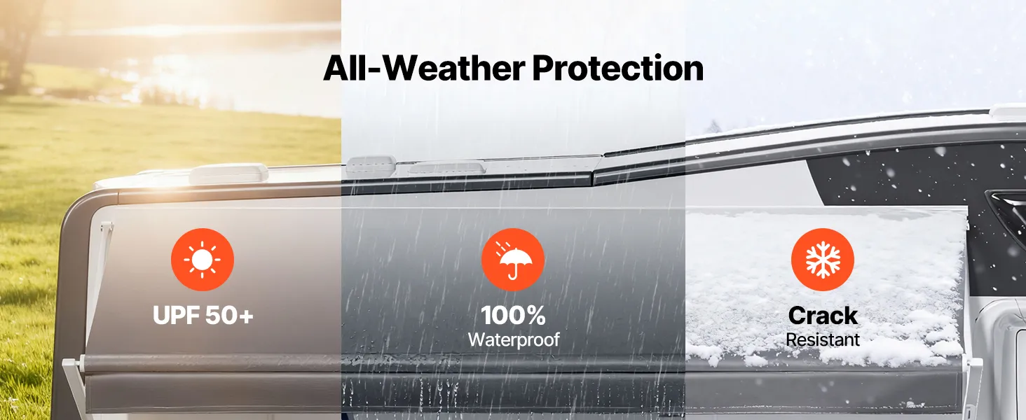 Made from professional sun and rain-resistant material, this durable RV awning fabric replacement resists wear, cracking, and aging, ensuring year-round protection and lasting outdoor comfort.