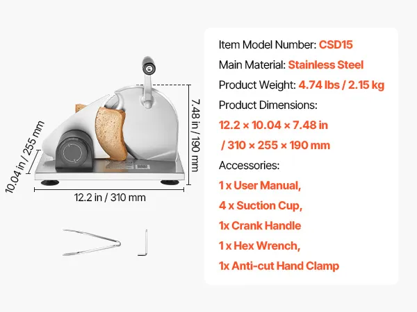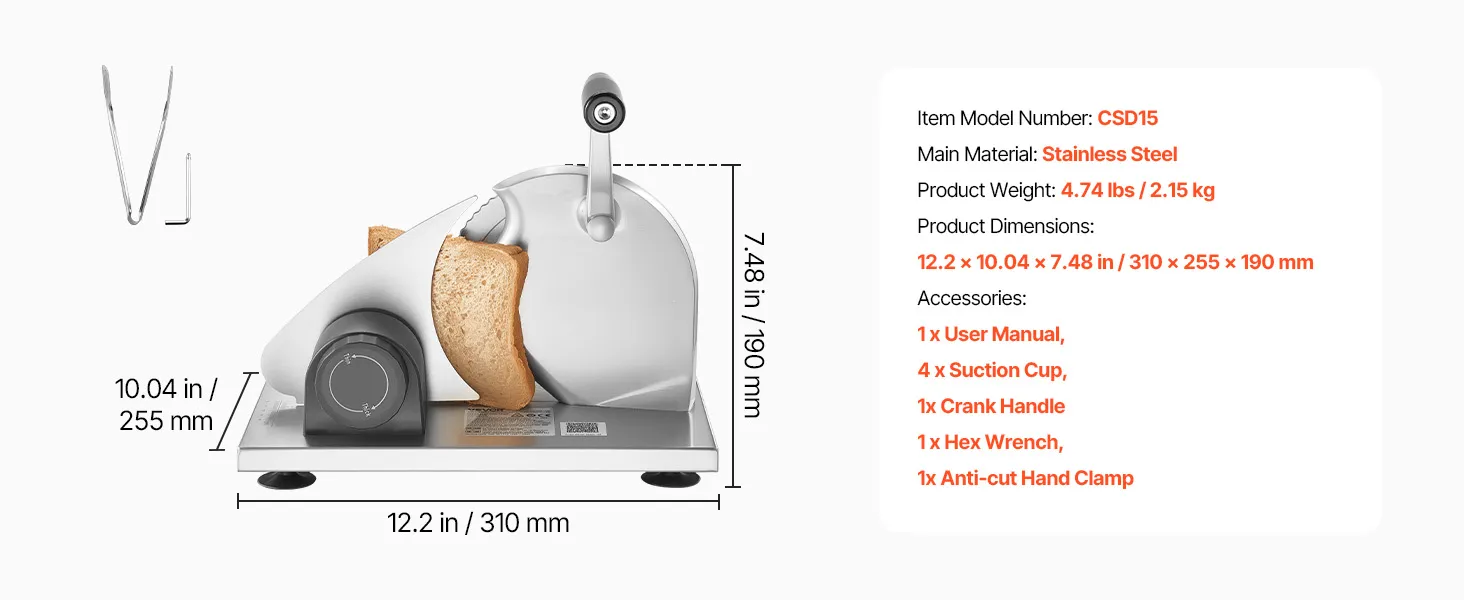 Enhanced Design: The hand-cranked bread slicer is easy to assemble and disassemble, featuring four suction cups for stability and an anti-cut hand clamp for safer operation