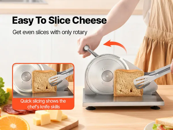 Suitable for slicing cheese, bread, tofu, sausage, and more to meet a variety of slicing needs.