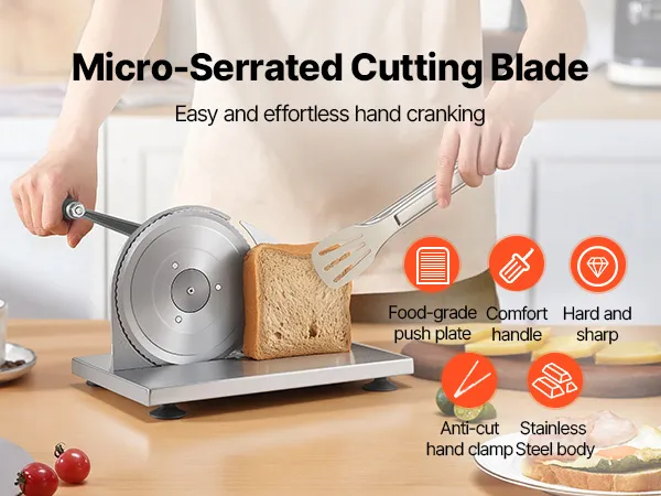 The VEVOR hand-cranked bread slicer delivers fast, smooth, and even cuts with adjustable thickness from 0 to 15mm. It’s an ideal tool for kitchens, bakeries, and gatherings—making bread prep easier and more convenient.