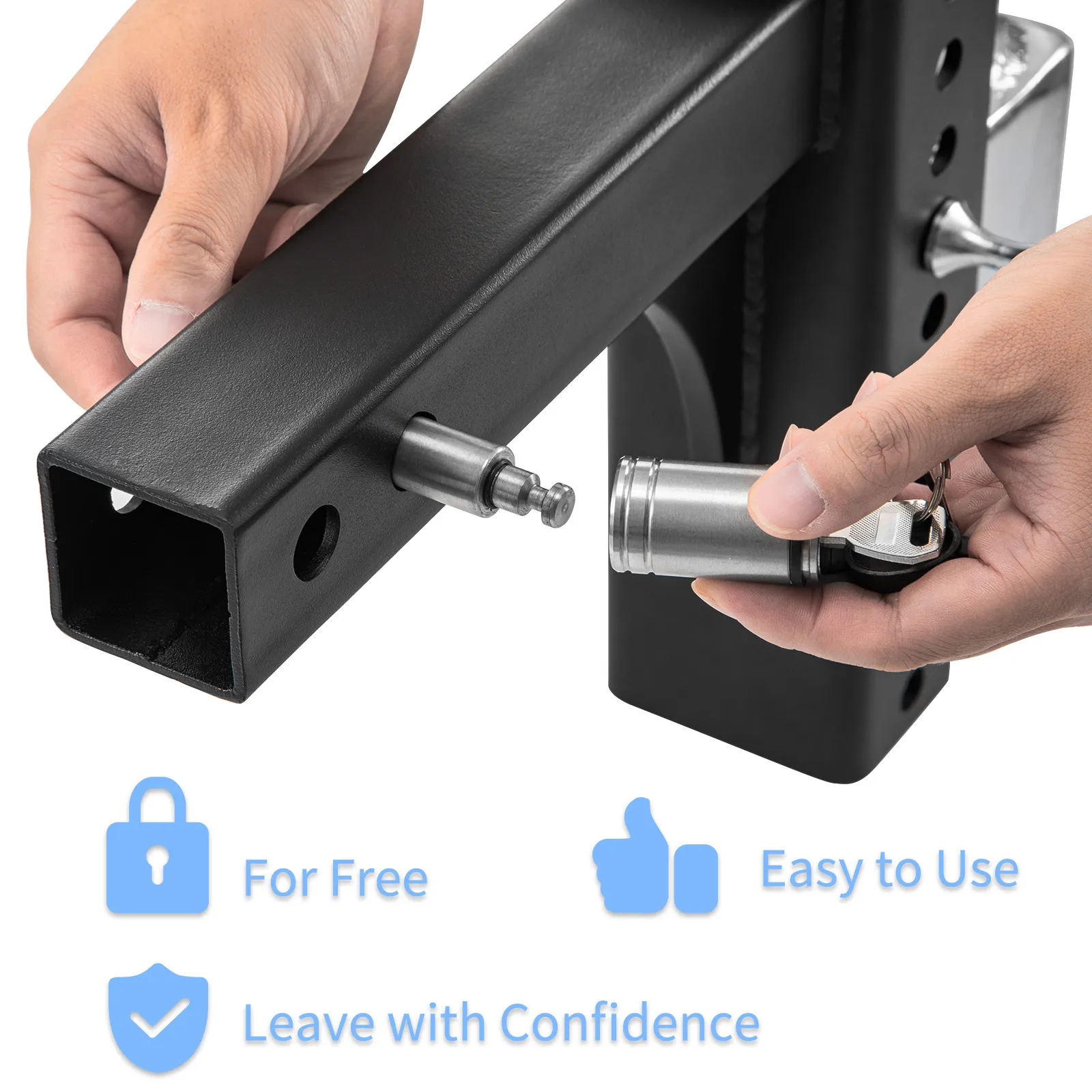 The latch lock prevents the device from being stolen. You can stop worrying about the security of the adjustable hitch when leaving the car. More than that, we also prepared a spare key to make it more convenient for you.