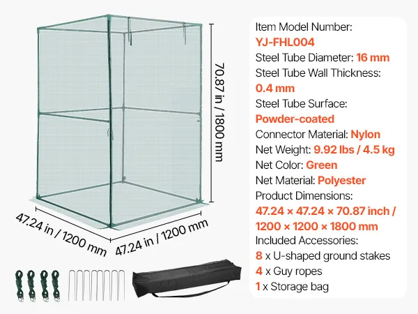 Spacious Interior: Measuring 47.24 x 47.24 x 70.87 in/1200 x 1200 x 1800 mm, this crop cages for garden provides ample space for vegetables, fruits, flowers, and other plants to thrive without external disturbance
