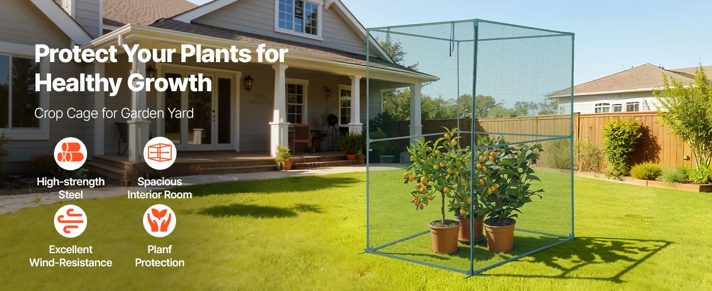 Our crop cages for garden features high-strength steel tubes and durable polyester mesh for a stable structure. It not only keeps animals away from the plants but also enhances wind resistance. With ample interior space, it ensures a flexible growing condition for plants.