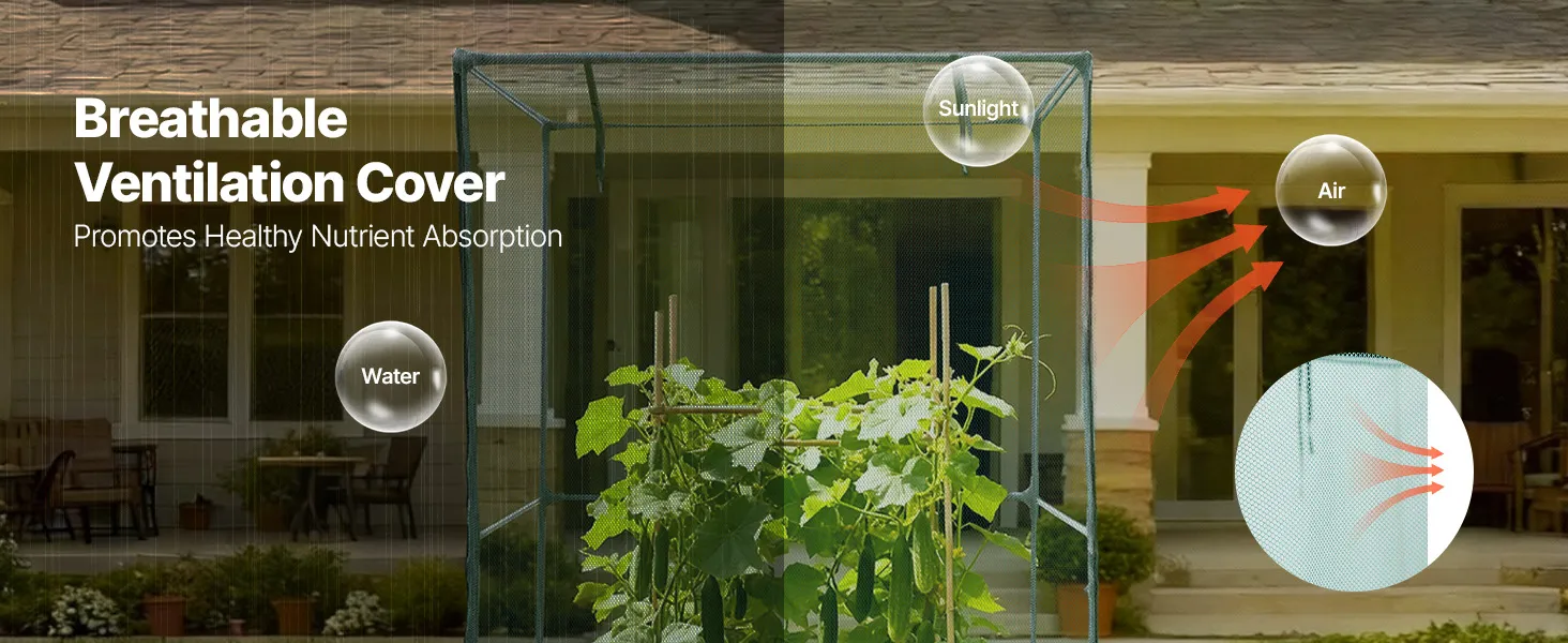 The breathable mesh promotes air circulation, sunlight exposure, and water penetration. Our crop cage fully provides nutrients for plants and creates an ideal condition for their vigorous growth.