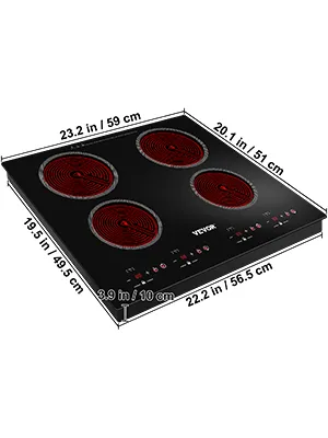 The cutout size of our electric cooktop is 22.2 x 19.5 inches. With the built-in design, it is effortless for you to install this cooktop into your kitchen, and it also saves a lot of your cooking space.