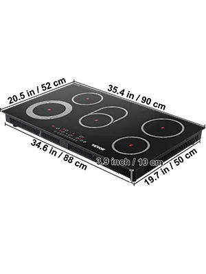 The cutout size of our electric cooktop is 34.6 x 19.7 inches. With the built-in design, it is effortless for you to install this cooktop into your kitchen, and it also saves a lot of your cooking space.