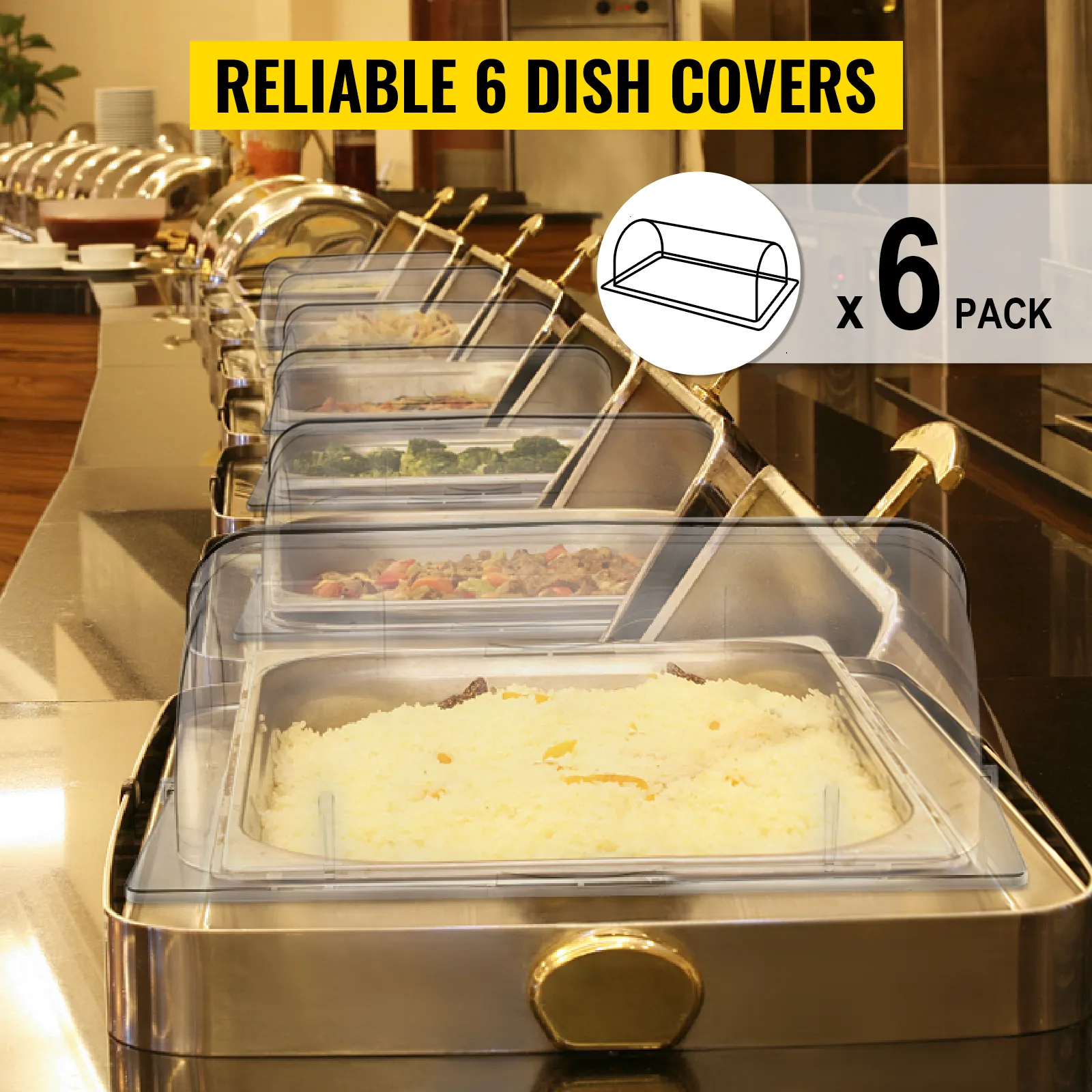 The 6-pack chafing dish covers do a great job of keeping your food clean and fresh. They are lightweight, easy to use, and easy to wash. Start making food serving a breeze by saying bye-bye to your heavy metal lids.