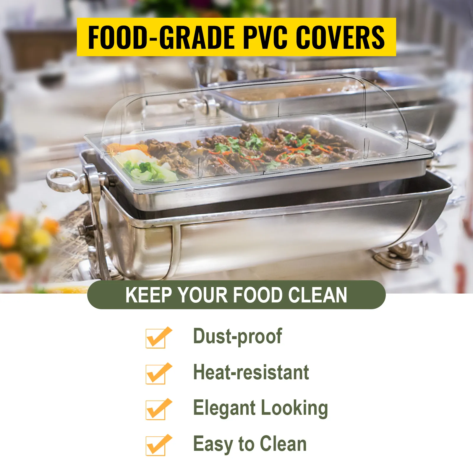 Get rid of those annoying bugs. Show your guests the delicious food, but never again have to bother lifting the lids. Keep your food covered, and stop worrying whether it is clean or fresh. Get these VEVOR chafing dish covers NOW, and start a new day at your catering business.