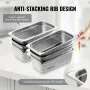 The VEVOR's hotel pans are made from SUS201 stainless steel. This ensures they are strong and durable. They can handle heavy usage over time. The 0.8 mm thick steel adds strength. These pans resist rust and corrosion. It makes them ideal for commercial use. The anti-stacking groove design makes them sturdier. No welding or gaps in the smooth surface protects your hands. We construct our hotel pans with durability and dependability in mind. These pans are ideal for any catering business or restaurant.