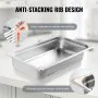 VEVOR hotel pan stack with anti-stacking grooves, enhanced durability, and smooth edge treatment.