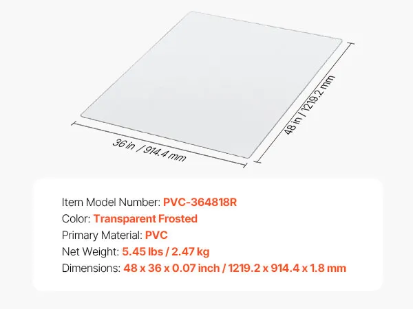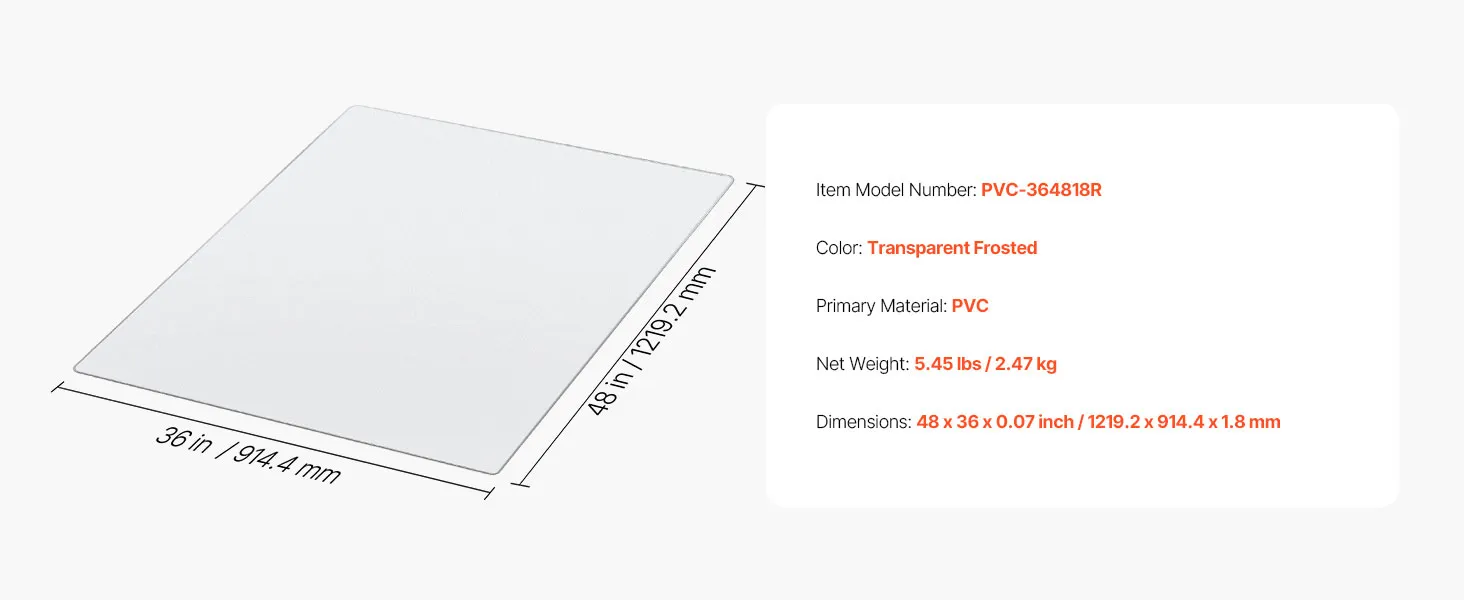 Durable & Easy to Clean: Made from 0.07-inch / 1.8 mm thick high-quality PVC, this under desk rug resists deformation and cracking. The transparent matte finish is waterproof, and stains wipe off easily, ensuring long-term durability