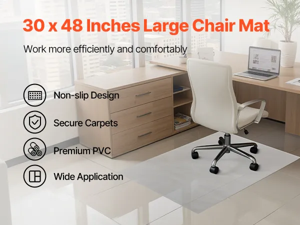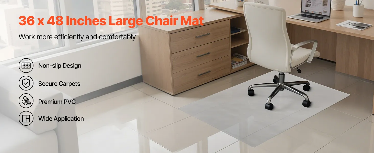 VEVOR Chair Mat, 915 x 1225 mm Transparent Office Chair Mat for Hard Floors, Floor Protector for Rolling Chairs, Non-Slip & Easy to Clean, Smooth Glide Under Desk Rug for Home Office (Rectangular)