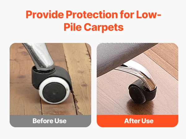 The thick cushioning layer of the clear floor mat absorbs chair wheel pressure, securing your carpet from dents and scratches. It extends carpet life and reduces wear on your chair wheels, keeping everything looking new.