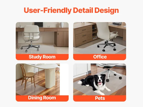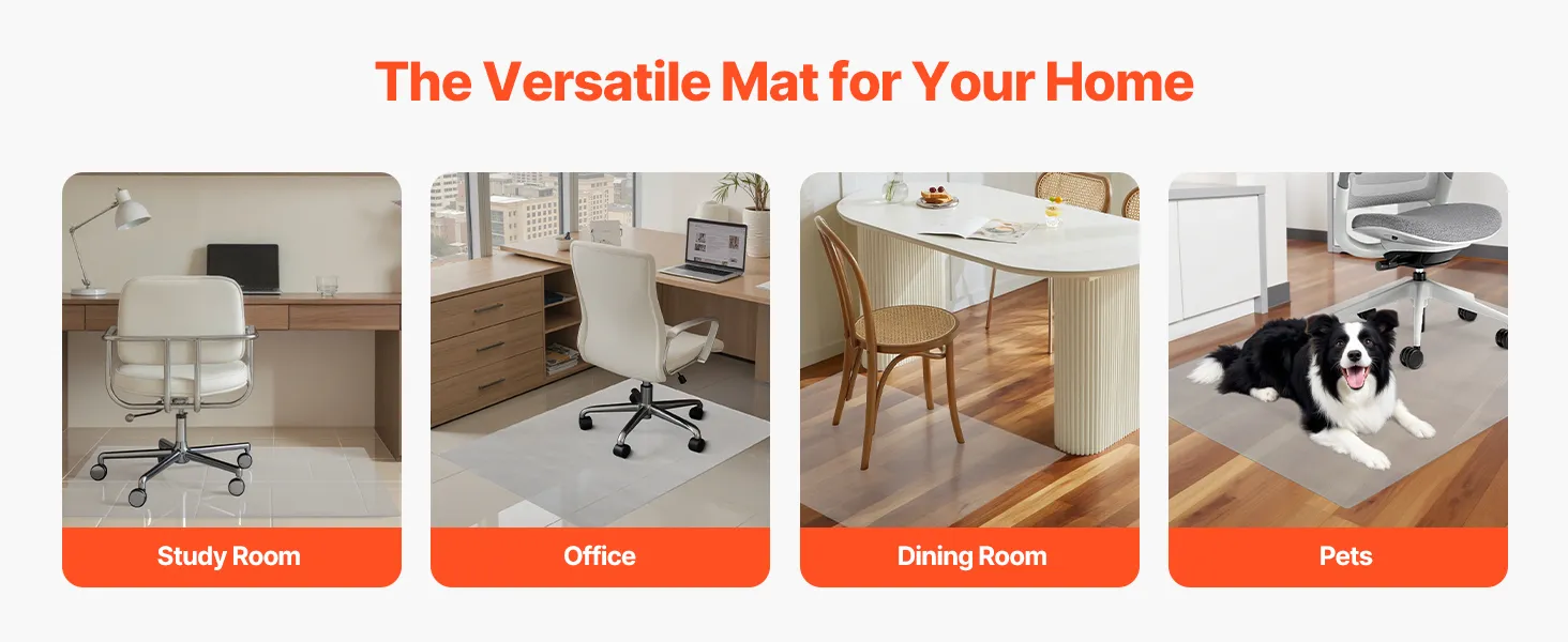 This office chair mat is versatile, suitable for use in dining areas, pet zones, or any place that requires physical separation. It works in both work and home environments, offering convenience and style.