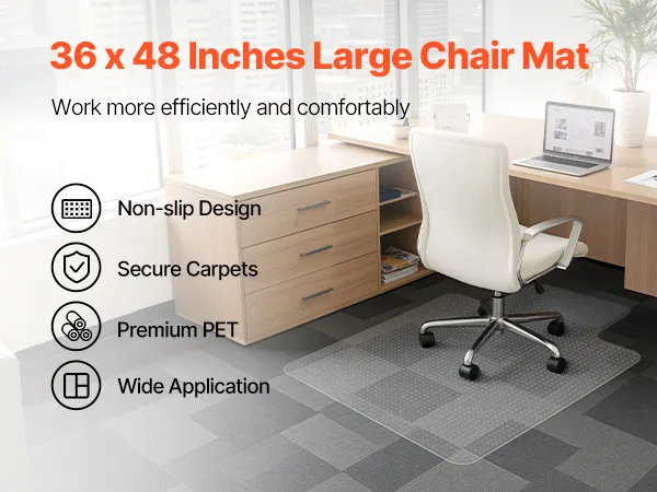 VEVOR Chair Mat with Lip, 915 x 1225 mm Office Chair Mat for Low Pile Carpeted Floors, Clear Floor Protector Rug with Studded, Non-Slip & Easy to Clean, Smooth Glide Under Desk Rug for Home Office