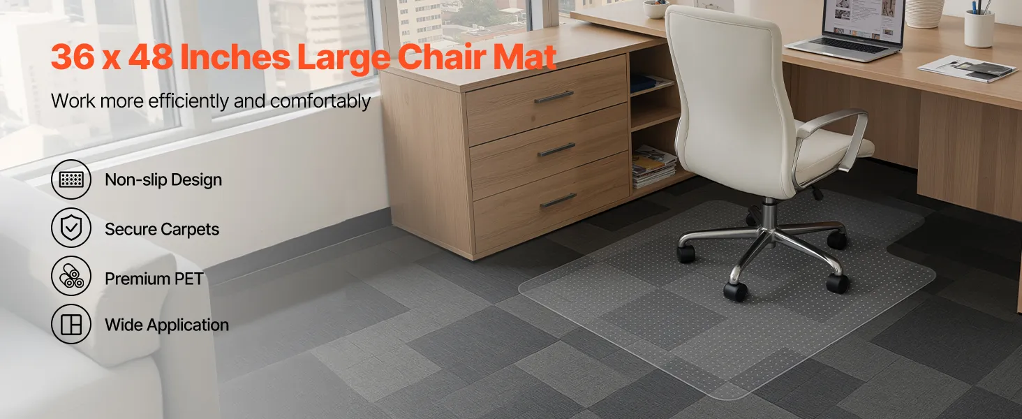 Stable & Non-Slip: This chair mat features a studded design on the back for strong grip on low-pile carpets. It keeps the mat firmly in place, avoiding any shifting or sliding—ideal for a stable workspace