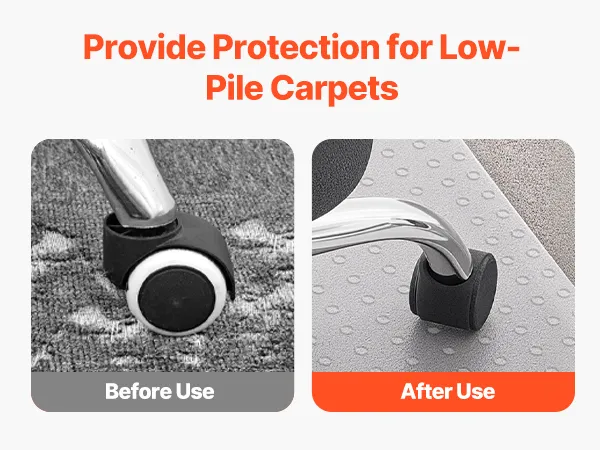 The thick cushioning layer of the clear floor mat absorbs chair wheel pressure, securing your carpet from dents and scratches. It extends carpet life and reduces wear on your chair wheels, keeping everything looking new.
