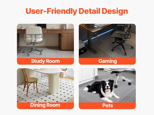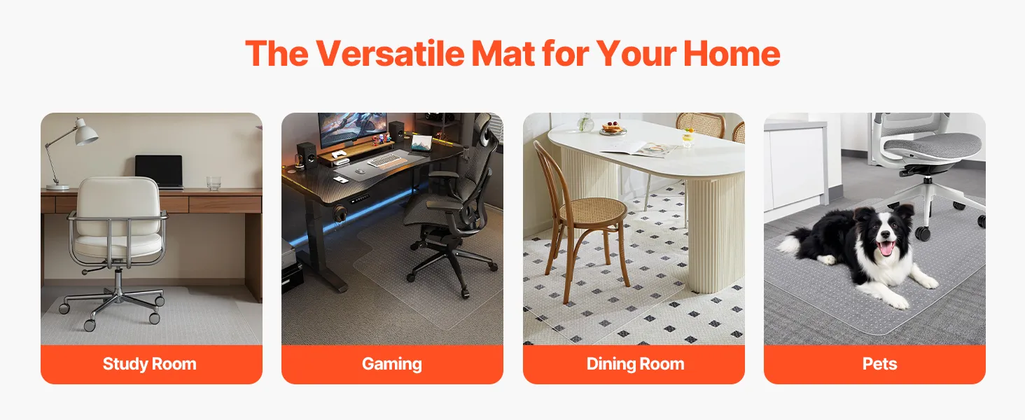 This office chair mat is versatile, suitable for use in dining areas, pet zones, or any place that requires physical separation. It works in both work and home environments, offering convenience and style.