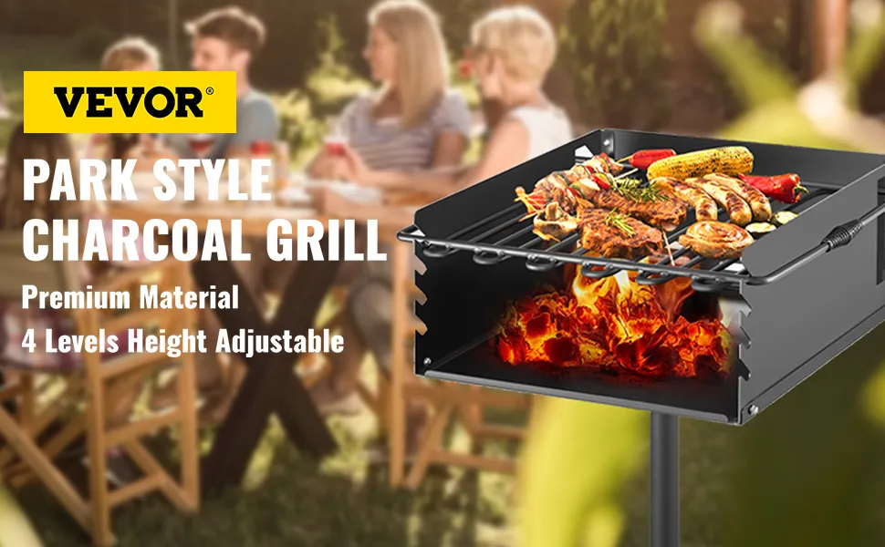 Get ready for a delicious barbecue with this outdoor park style grill! It adopts sturdy carbon steel for greater durability. The grate adopts 430 stainless steel, not easy to deform. Handles on the sides of the grate, allow you to lift the grate to 4 different cooking heights. Unit swivels 360 degrees to adjust for wind direction. Easy to install it anywhere in your yard. Let you enjoy cooking delicious steak, chicken, burgers with your family and friends.