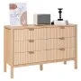 Enhance your living room with this elegant drawer dresser. The metal handles and sleek design lines add sophistication to your home, making it the ideal combination of storage and décor.