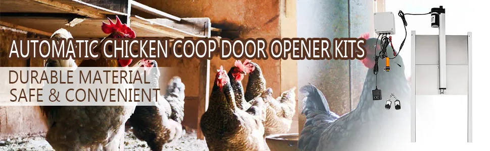 The chicken door opener is constructed with a solid aluminum plate for durability. Sizes: 12.6 inches wide, 11.8 inch high. Fits for most chickens, hens, and ducks.