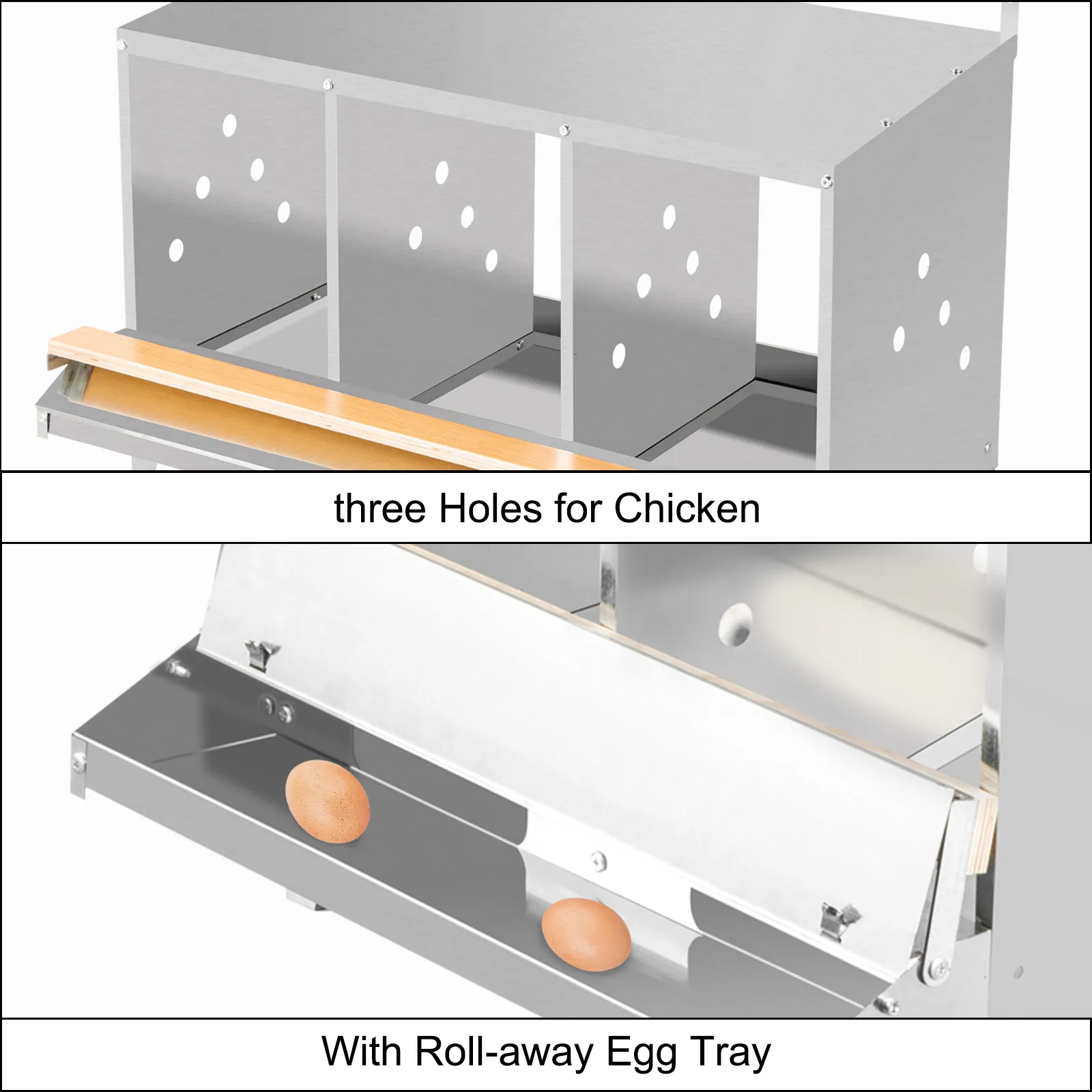 Our poultry nest is made of thick and long-lasting galvanized steel, creates a neat and comfortable laying environment for your chicken. The roll-out design will keep eggs clean and complete. User-friendly details for your convenient use. This roll away nesting box is easy to assemble with step-by-step instructions and pre-drilled holes.