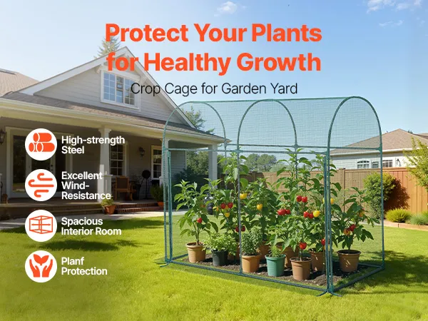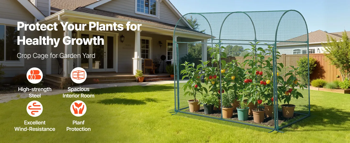 Our crop cages for garden features high-strength steel tubes and durable polyester mesh for a stable structure. It not only keeps animals away from the plants but also enhances wind resistance. With ample interior space, it ensures a flexible growing condition for plants.