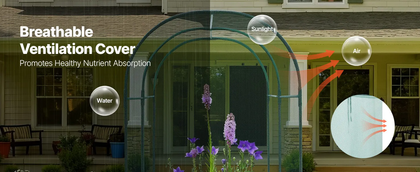 The breathable mesh promotes air circulation, sunlight exposure, and water penetration. Our crop cage fully provides nutrients for plants and creates an ideal condition for their vigorous growth.