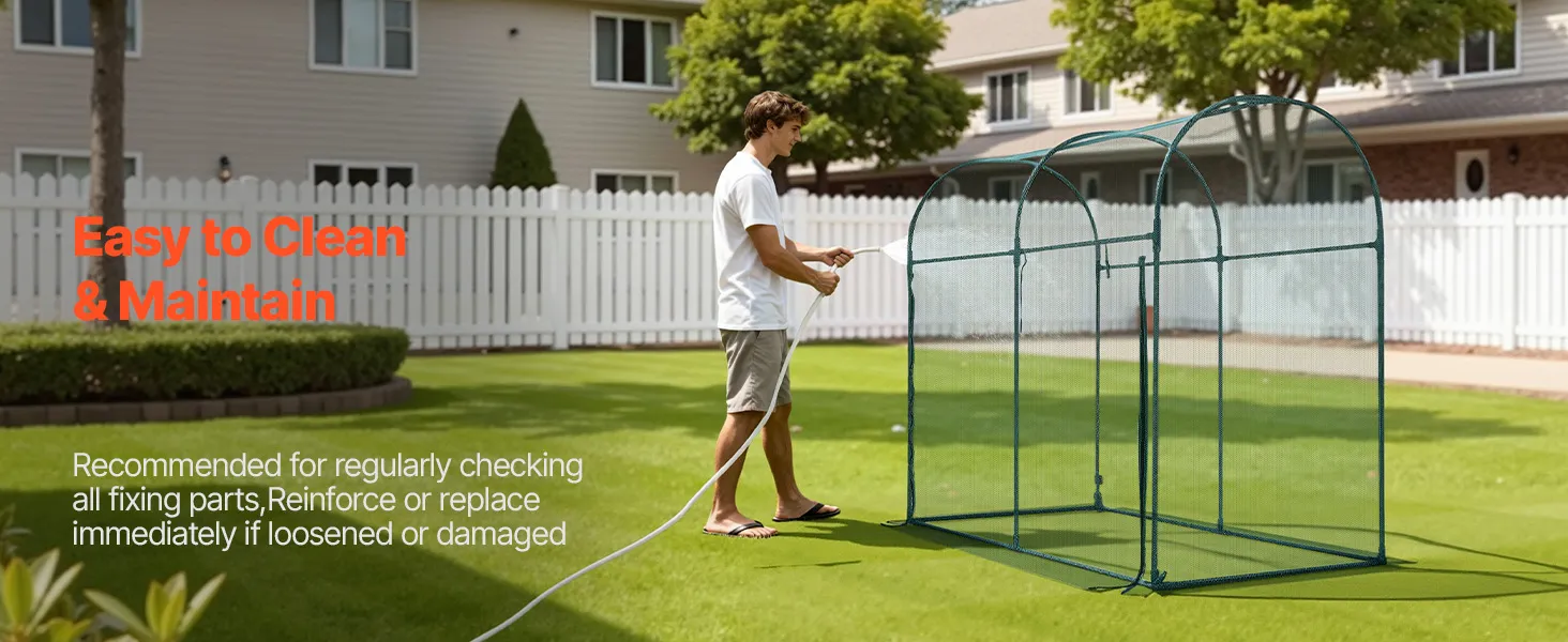 When the tall crop cage gets dirty, simply rinse it with water and air-dry. To ensure long-term stability, please regularly check all fixing parts. Reinforce or replace immediately if loosened or damaged.