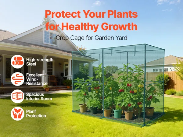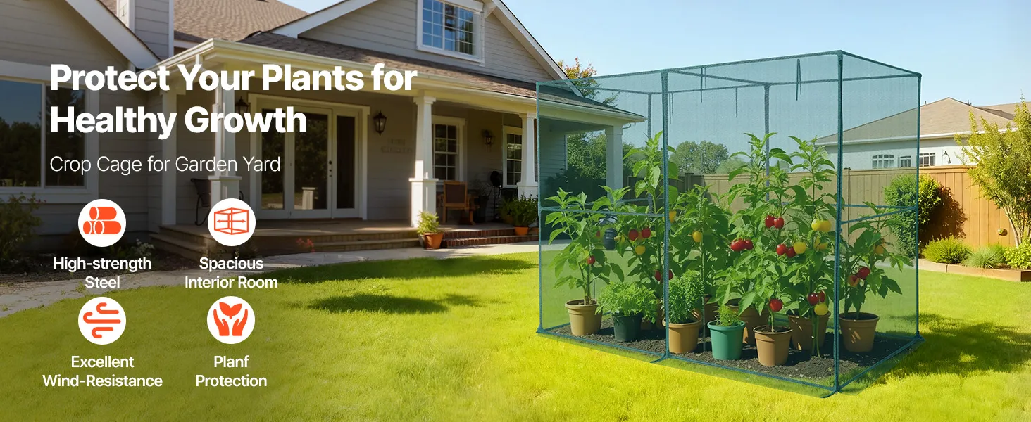 Our crop cages for garden features high-strength steel tubes and durable polyester mesh for a stable structure. It not only keeps animals away from the plants but also enhances wind resistance. With ample interior space, it ensures a flexible growing condition for plants.