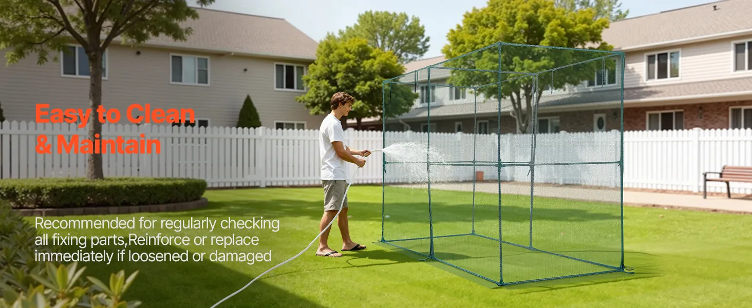 When the tall crop cage gets dirty, simply rinse it with water and air-dry. To ensure long-term stability, please regularly check all fixing parts. Reinforce or replace immediately if loosened or damaged.