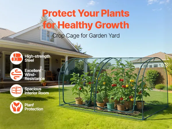 Our crop cages for garden features high-strength steel tubes and durable polyester mesh for a stable structure. It not only keeps animals away from the plants but also enhances wind resistance. With ample interior space, it ensures a flexible growing condition for plants.