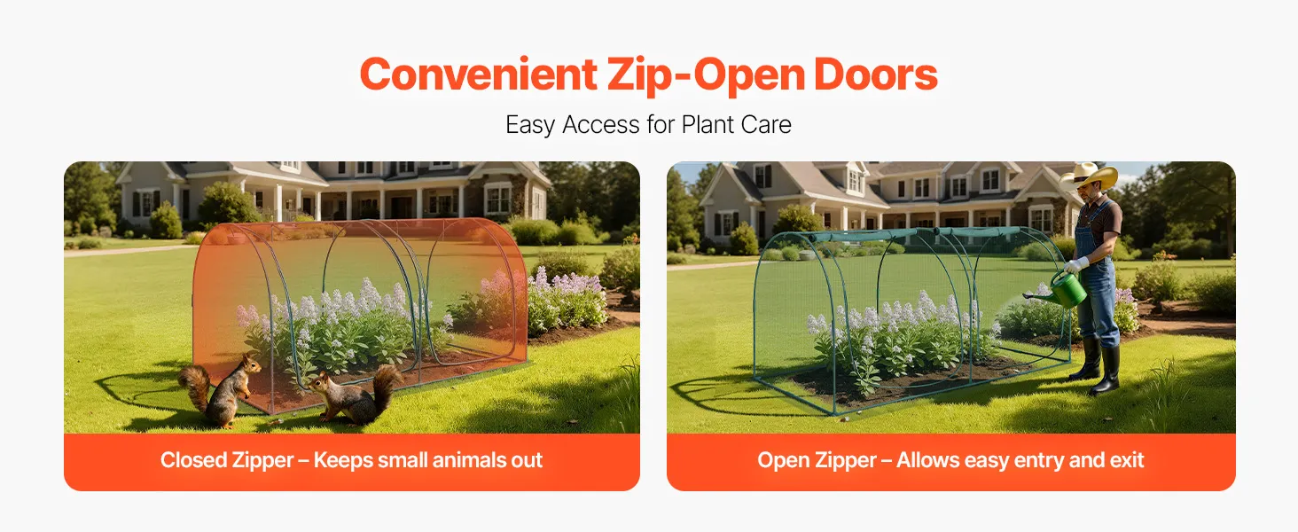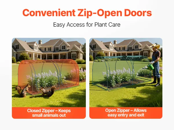 Equipped with convenient zip-open doors, this plant cage provides great ease for plant care. Zip closed to form a secure barrier against small animals, or unzip to easily access your plants for hassle-free plant care.