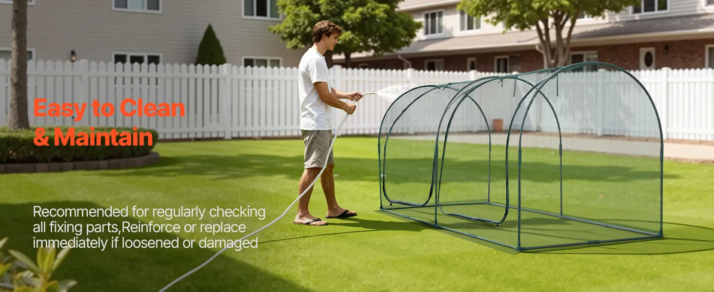 When the tall crop cage gets dirty, simply rinse it with water and air-dry. To ensure long-term stability, please regularly check all fixing parts. Reinforce or replace immediately if loosened or damaged.