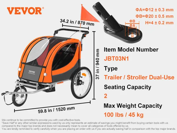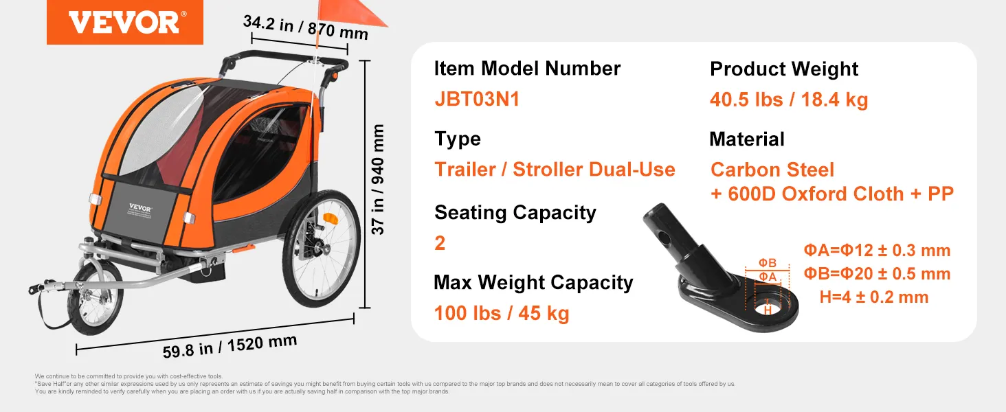 This VEVOR Bike Trailer for Toddlers is a versatile option for active parents. It's both a bike trailer and a stroller. So, it makes it easy for you to switch between activities. The trailer's strong construction allows it to handle various terrains. No matter if you're cycling in the park or walking around town, this trailer offers a smooth ride. You get accustomed to comfort and convenience. The dual-functionality makes it a logical choice for busy parents. Enjoy outdoor activities with your kids without hassle. This trailer is an essential addition to family adventures.
