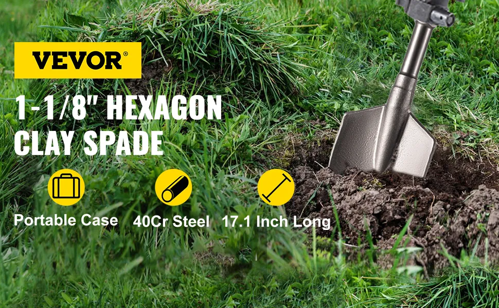 Quality work requires accurate and durable tools. VEVOR's spade drill is the right tool if you need digging or trenching through clay, packed dirt, frozen soil, gravel, concrete, and similar materials for home improvement or gardening work. Our horse spade bit fits precisely into your rotary power drill with a 1-1/8" Hexagon shank to get your work done easily. Don't rely on a tool that might work when you can get a tool that will work.