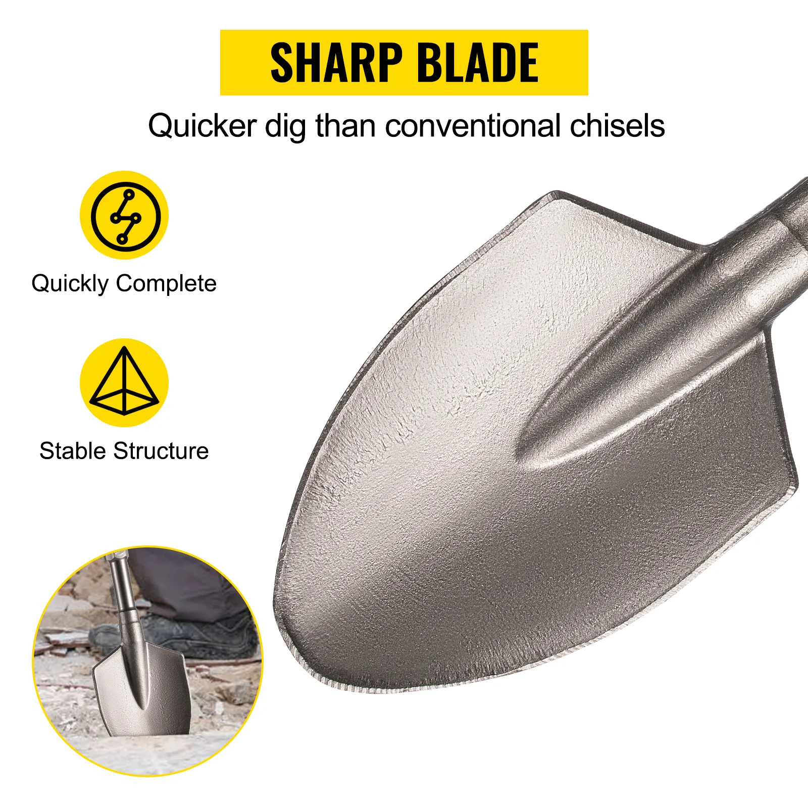 Specially Designed Working End: VEVOR clay spade chisel with an ergonomically angled working end ensures digging at a high-efficiency rate. Its large spade head allows you to quickly dig a large-scale area with high efficiency.