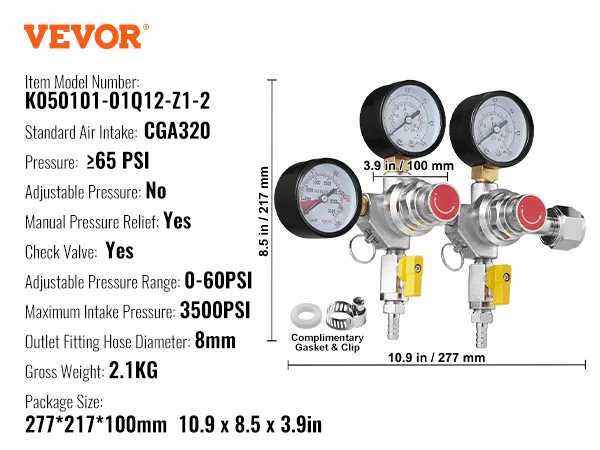 Built with durable materials, the VEVOR Triple Gauge CO2 Regulator is made to last. Its robust design ensures long-term reliability, withstanding the demands of regular brewing. With rapid shipping, you can start using it quickly, making it a convenient option for homebrewers who need a dependable regulator promptly.
