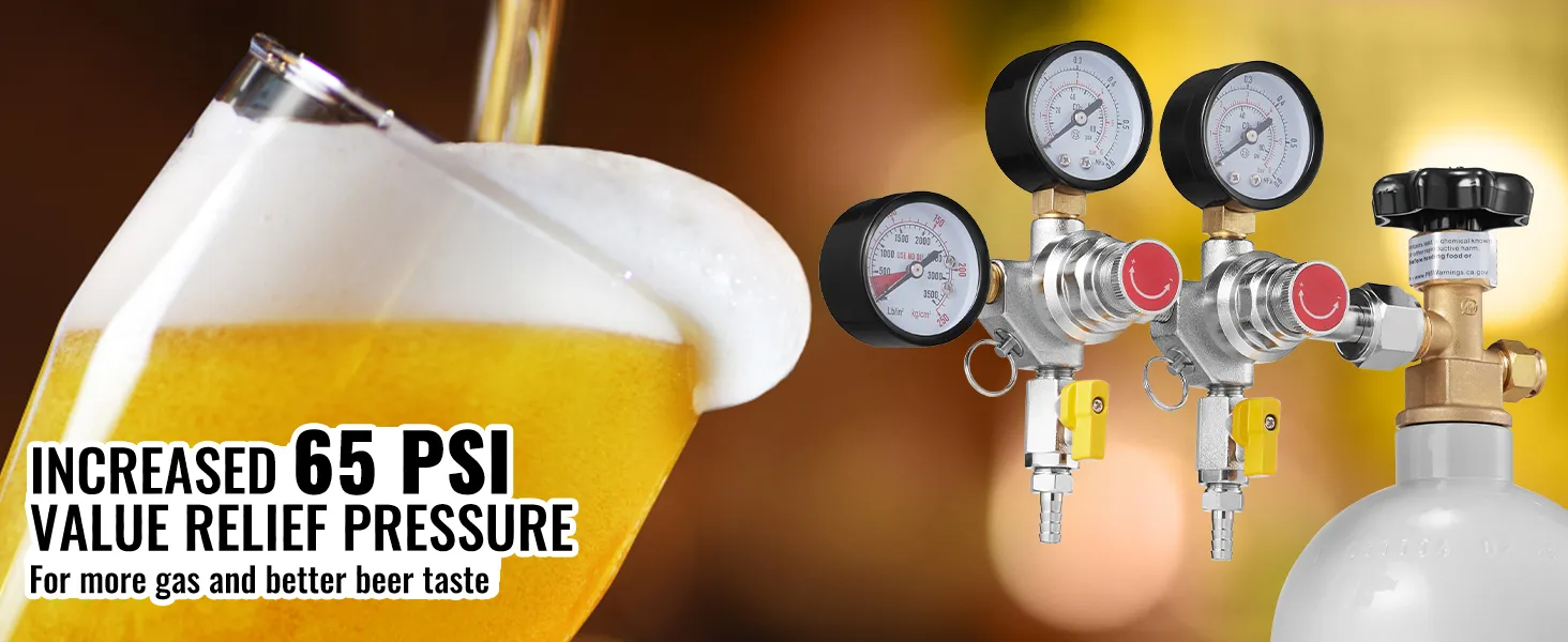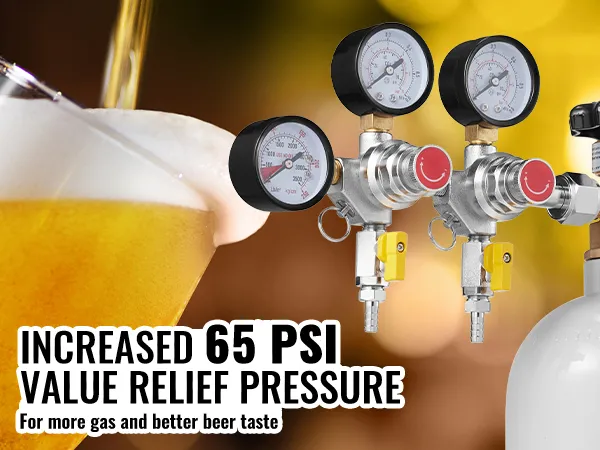 Featuring a pressure relief valve set at 65 PSI, this regulator maintains stable pressure throughout the brewing process. This stability is essential for achieving the desired flavor and texture in your beer. Consistent pressure levels ensure the quality and quantity of your brew, making it a reliable tool for those who value dependable results.