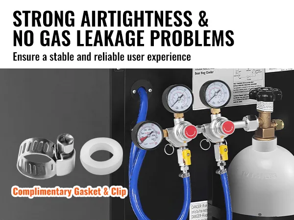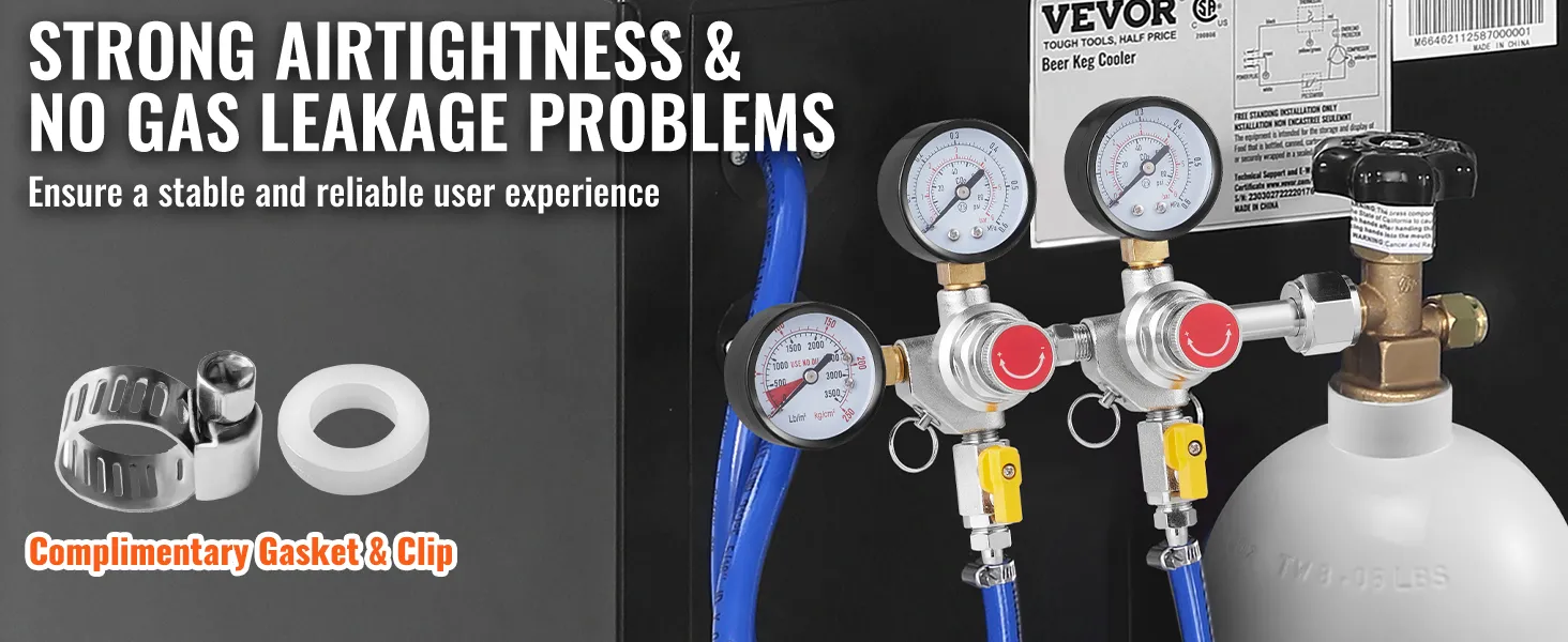 This regulator includes gaskets and clamps to secure it to your keg, ensuring a leak-proof design. Its reliable attachment prevents gas loss and maintains a stable brewing environment. Its gaskets and clamps are simple to install, providing an effective, tight fit that enhances the efficiency of your setup and maintains the quality of your brew.