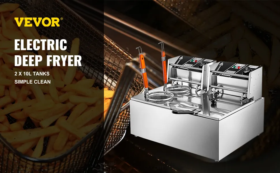 VEVOR Stainless Steel Deep Fryer 20L Dual Tank Deep Fryerw/ Removable Basket VEVOR Stainless Steel Deep Fryer 20L Dual Tank Deep Fryerw/ Removable Basket