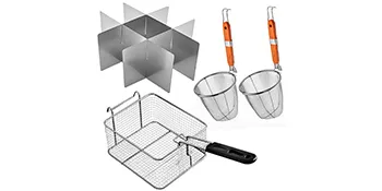 One oblong-shaped frying basket with an anti-scalding handle fries large pieces of fish and chicken and drains them easily. With this fryer, you may enjoy fried chips, chicken, onion rings in your home.