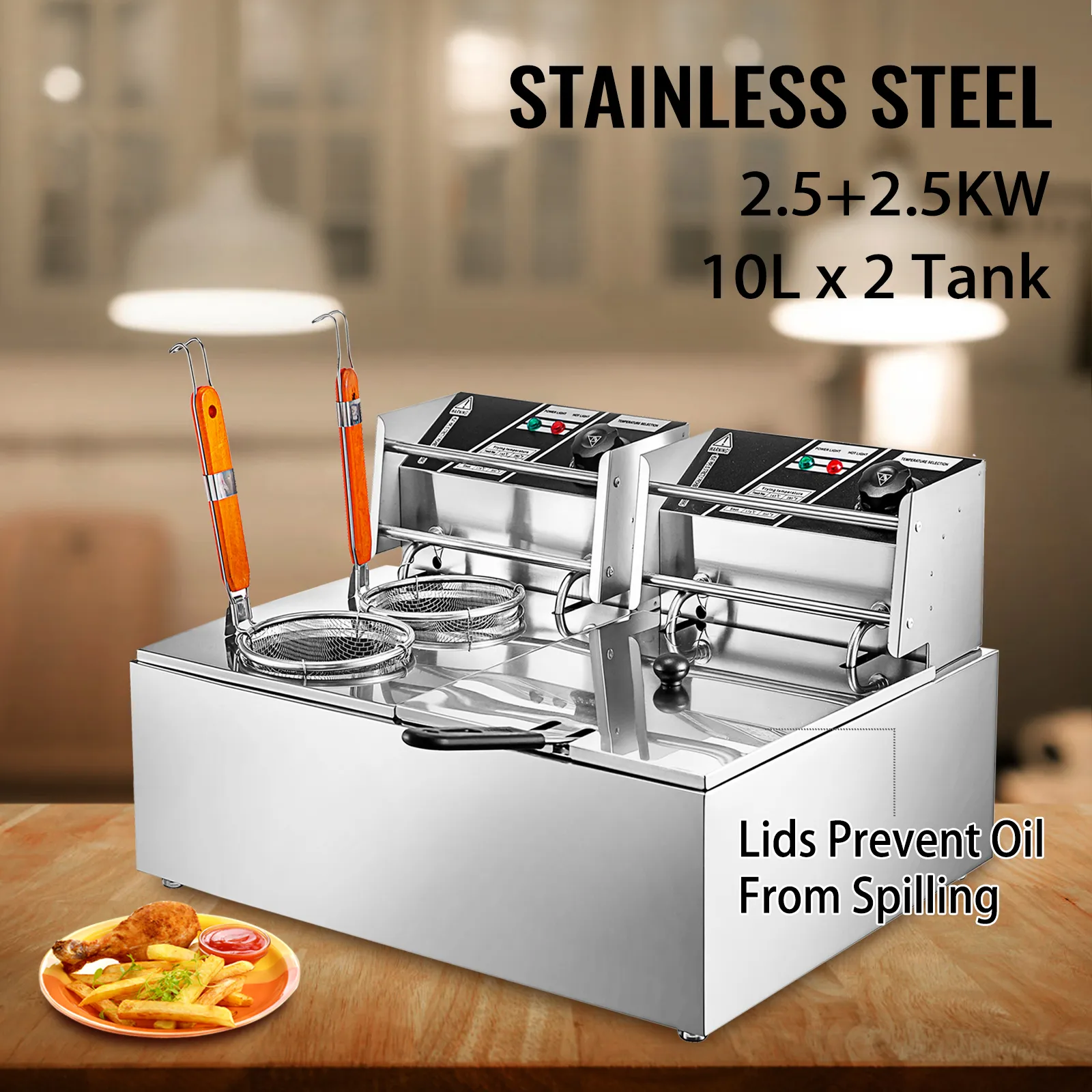 VEVOR Stainless Steel Deep Fryer 20L Dual Tank Deep Fryerw/ Removable Basket