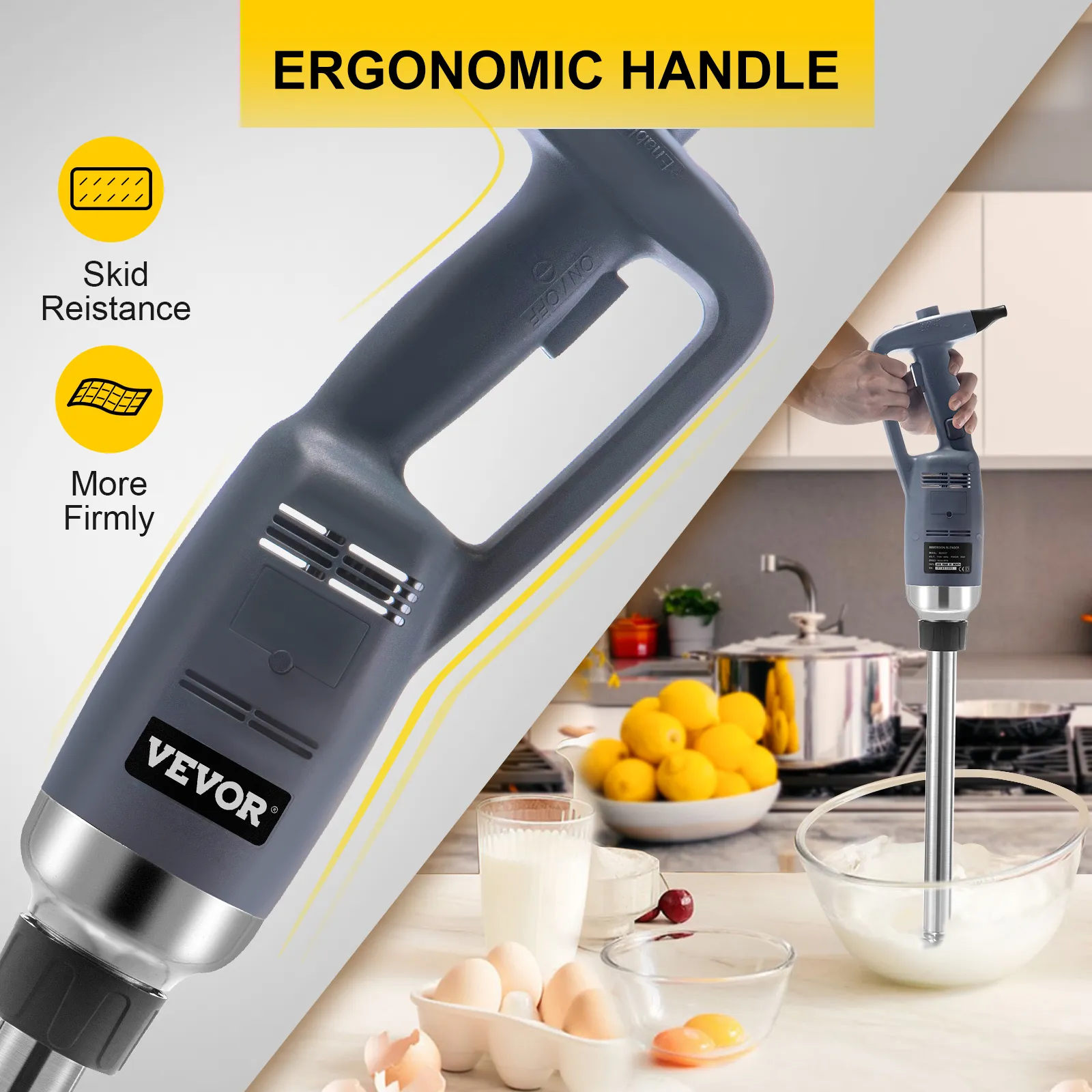 【ERGONOMIC HANDLE】- Due to the ergonomically designed handle of the hand blender, you can grasp the handle more firmly so as to avoid accidents caused by slipping. When you use our machine, this handle can also help you save more effort.