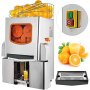 VEVOR commercial juicer with oranges, juice glass, and control switch.