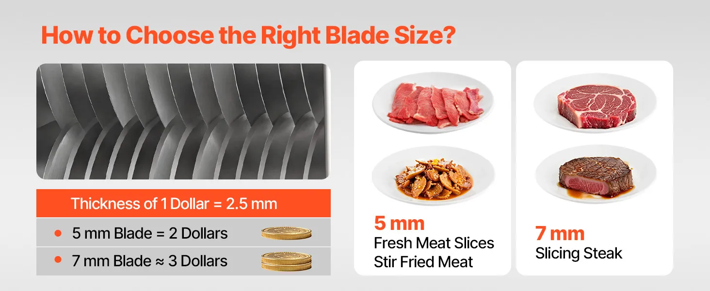 Easy Disassembly and Cleaning: The meat slicer blade is made of premium stainless steel for rust resistance, durability, and easy cleaning. Rinse directly with a spray hose or soak the entire unit for convenient, efficient cleanup