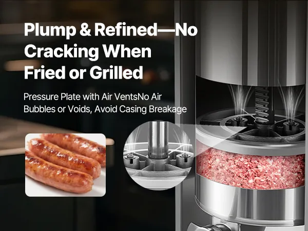 Tight & Even Filling: The pressure plate of this sausage machine is designed with air-release holes to expel excess air during pressing. There’s no need to puncture casings repeatedly or worry about tearing. You’ll get firm, evenly shaped sausages with excellent bite and texture