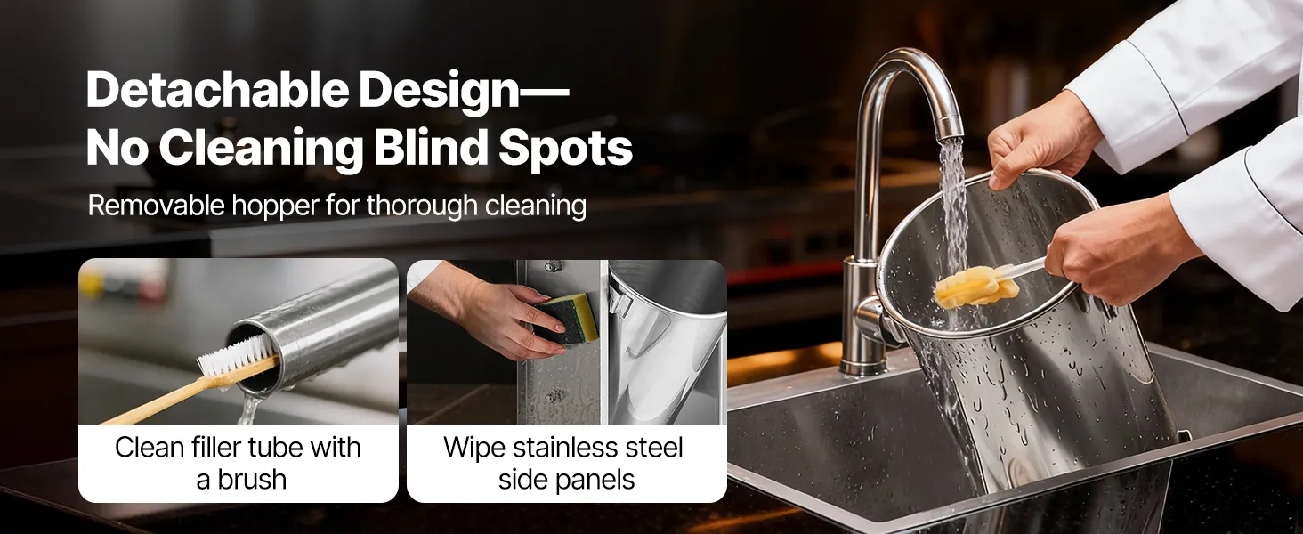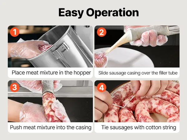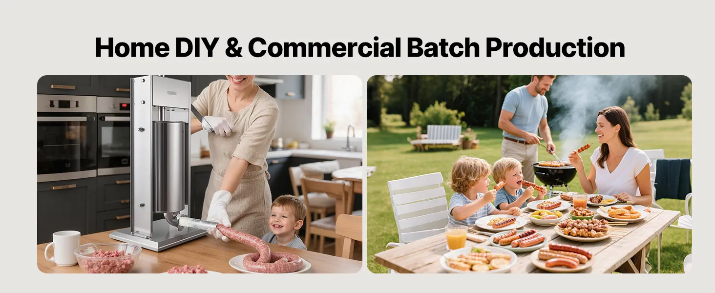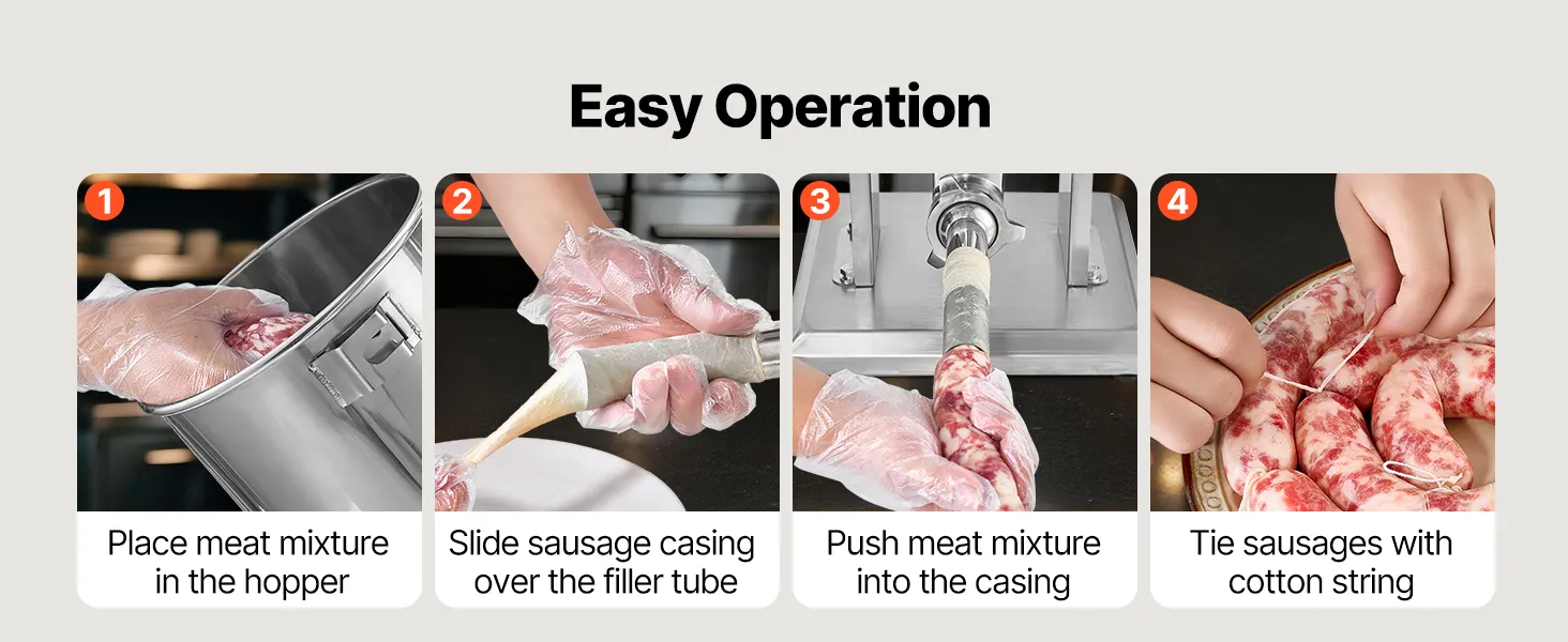 Hassle-Free Cleaning: This sausage filling machine features removable components such as the barrel, piston, and tubes, all of which are dishwasher-safe. The stainless steel surface cleans easily with a wipe. Suitable for home use, commercial settings, hunting, or pet food preparation, and also makes a practical gift
