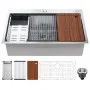 This kitchen sink comes with useful accessories. It includes a strainer and cutting board. These accessories enhance the sink's functionality. A Perfect fit ensures no leaks from the strainers. It is simple to install and use. The cutting board provides an efficient prep surface. They fit snugly over the sink, adding extra workspace. All these accessories make your kitchen tasks easier. They are practical and useful additions to the sink. Included accessories add value to your purchase. You get more than just a basic sink with this product. This is a complete kitchen solution. This sink's added functionality is a major benefit.