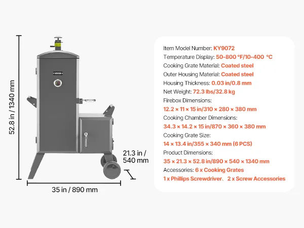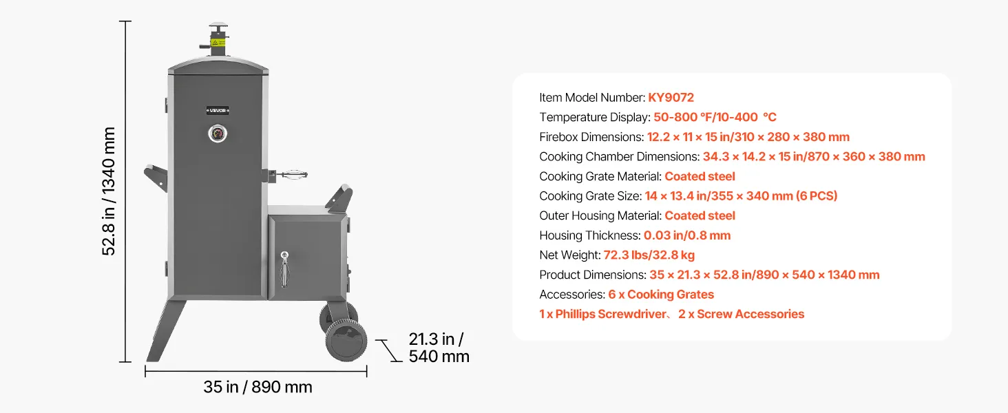 Sturdy and Durable: Built with heavy-duty coated steel, this charcoal smoker with side firebox delivers superior heat conductivity for faster cooking. High-temp powder coating resists heat, rust, peeling, deformation and weather for reliable outdoor cooking